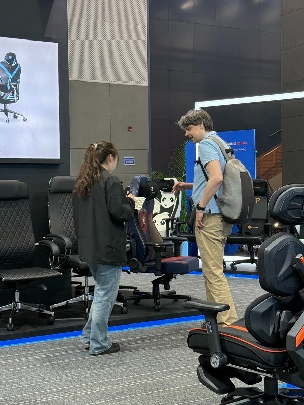 Booth visitors were impressed by the stylish and modern design and exquisite craftsmanship of these new products. Many visitors personally experienced our newly launched gaming chairs and gave them high praise and positive feedback.