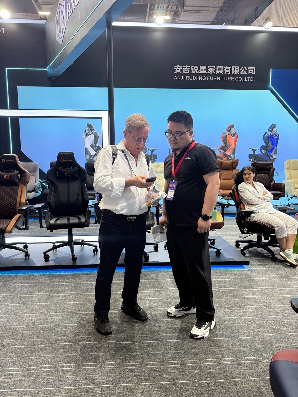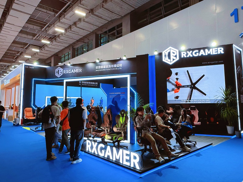 During the exhibition, Anji Ruixing Furniture highlighted its self-designed and self-developed gaming chairs, marking a significant milestone in the company’s journey of innovation. Among the many standout pieces was the debut of the RX-K7, RX-K8, and RX-6301PRO gaming chair series. These chairs were exclusively developed in-house, with custom molds designed by our expert team to create unique and ergonomically optimized shapes that meet the high demands of gamers. The design language of these models reflects our commitment to blending functionality with aesthetics, offering a comfortable and immersive gaming experience.