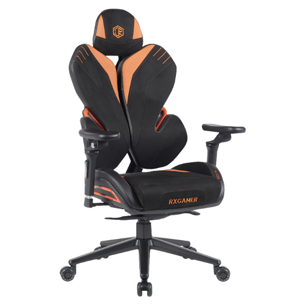 The RXGAMER RX-K6-6201 incorporates a fabric combination that balances comfort and resilience. The design includes black suede velvet, four-way stretch black material, and amber orange fabric. This combination allows the seating surface to adapt to body movement while maintaining a refined visual appearance suitable for modern gaming setups.